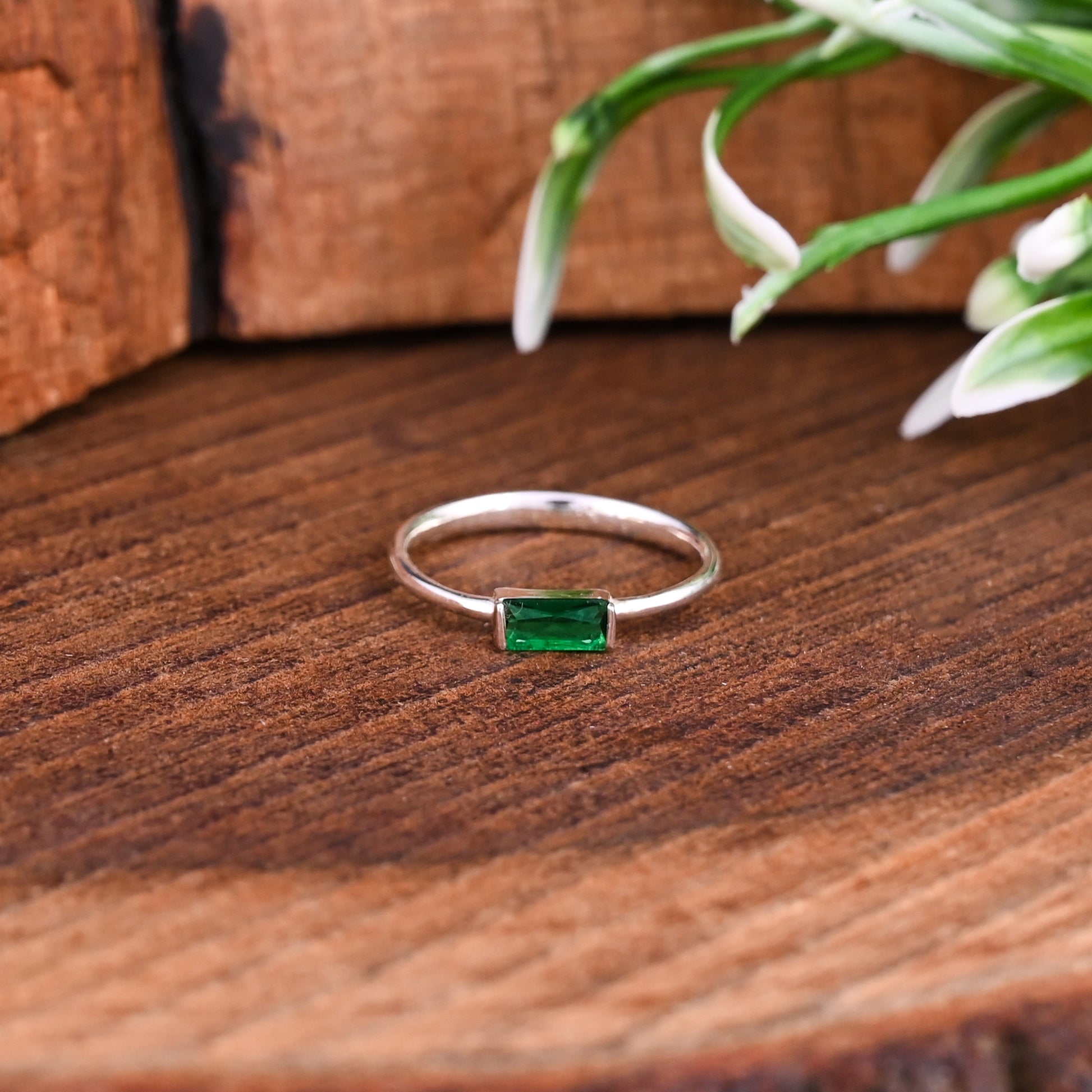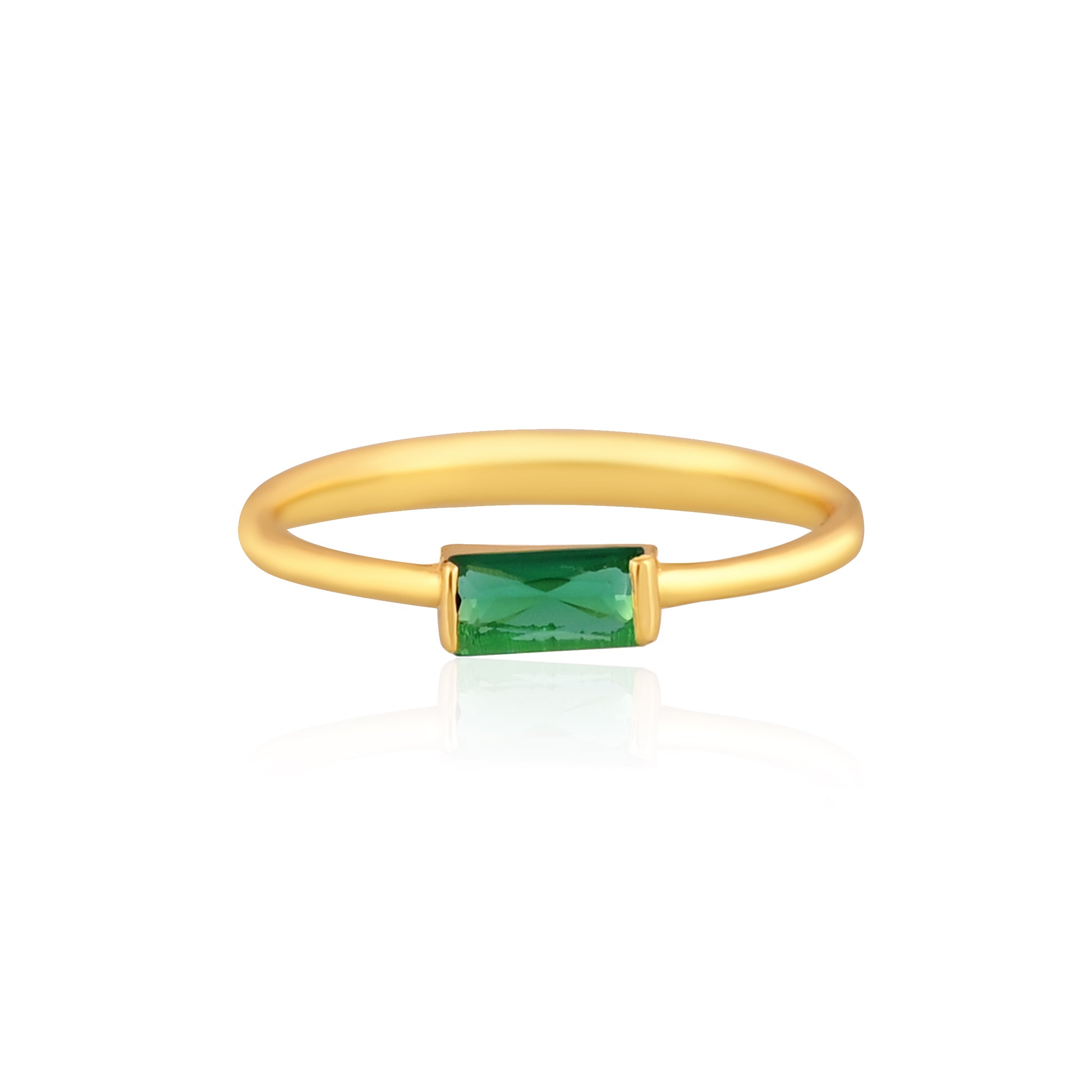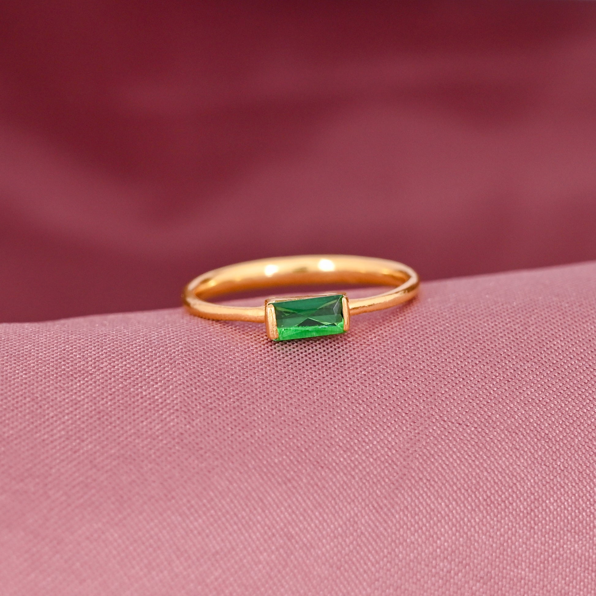 A whisper of nature's green, captured in the delicate embrace of a tiny emerald, a ring that tells tales of elegance and serenity